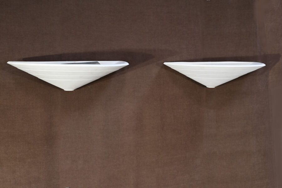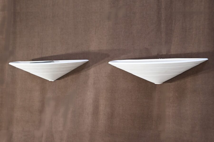 Paire d’appliques architecturales en plâtre HD à éclairage indirect tout droit sortie des ateliers Sedap.