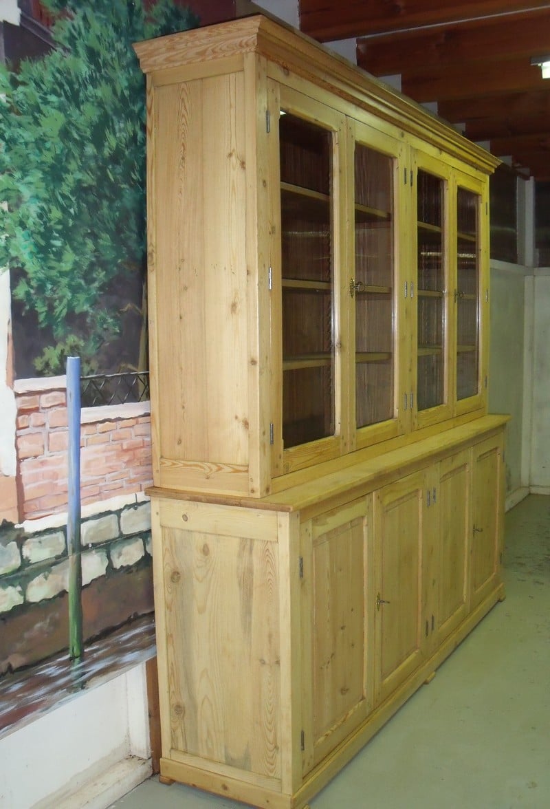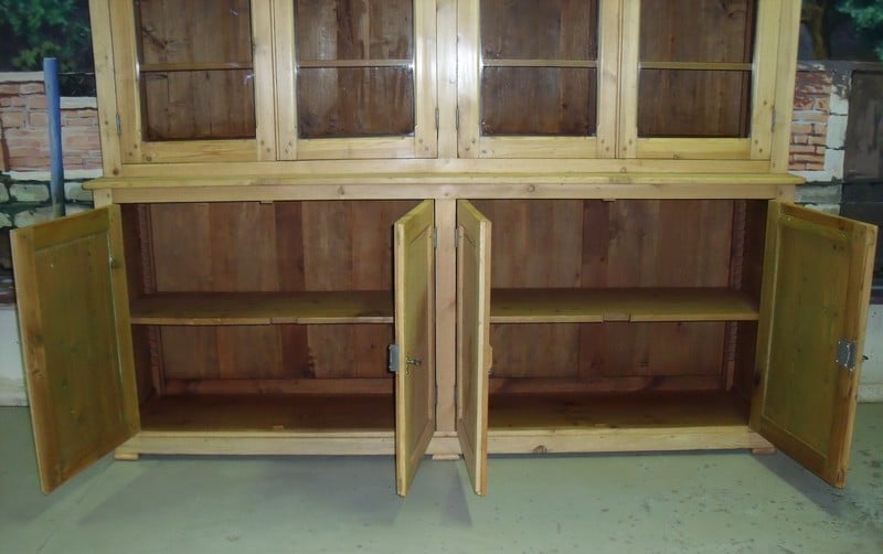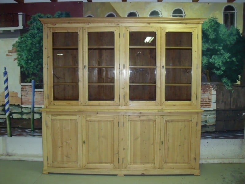 Deux-Corps Bibliothèque de commerce en pin blond naturel. 4 portes haut et bas.