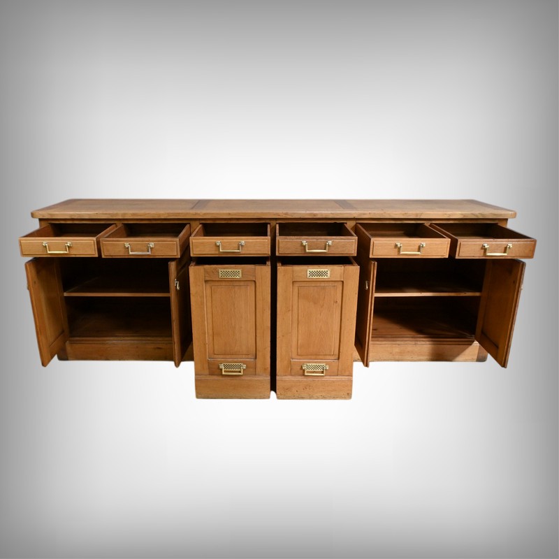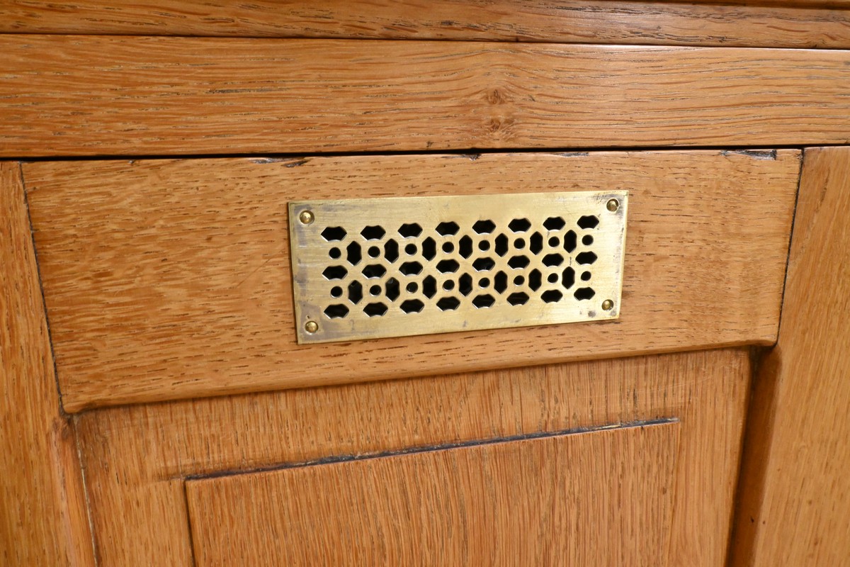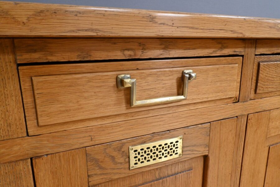 Tel est le cas de ce remarquable meuble de commerce en chêne datant de 1920, qui incarne à la fois l’élégance, la robustesse et l’ingéniosité d’une époque révolue.
