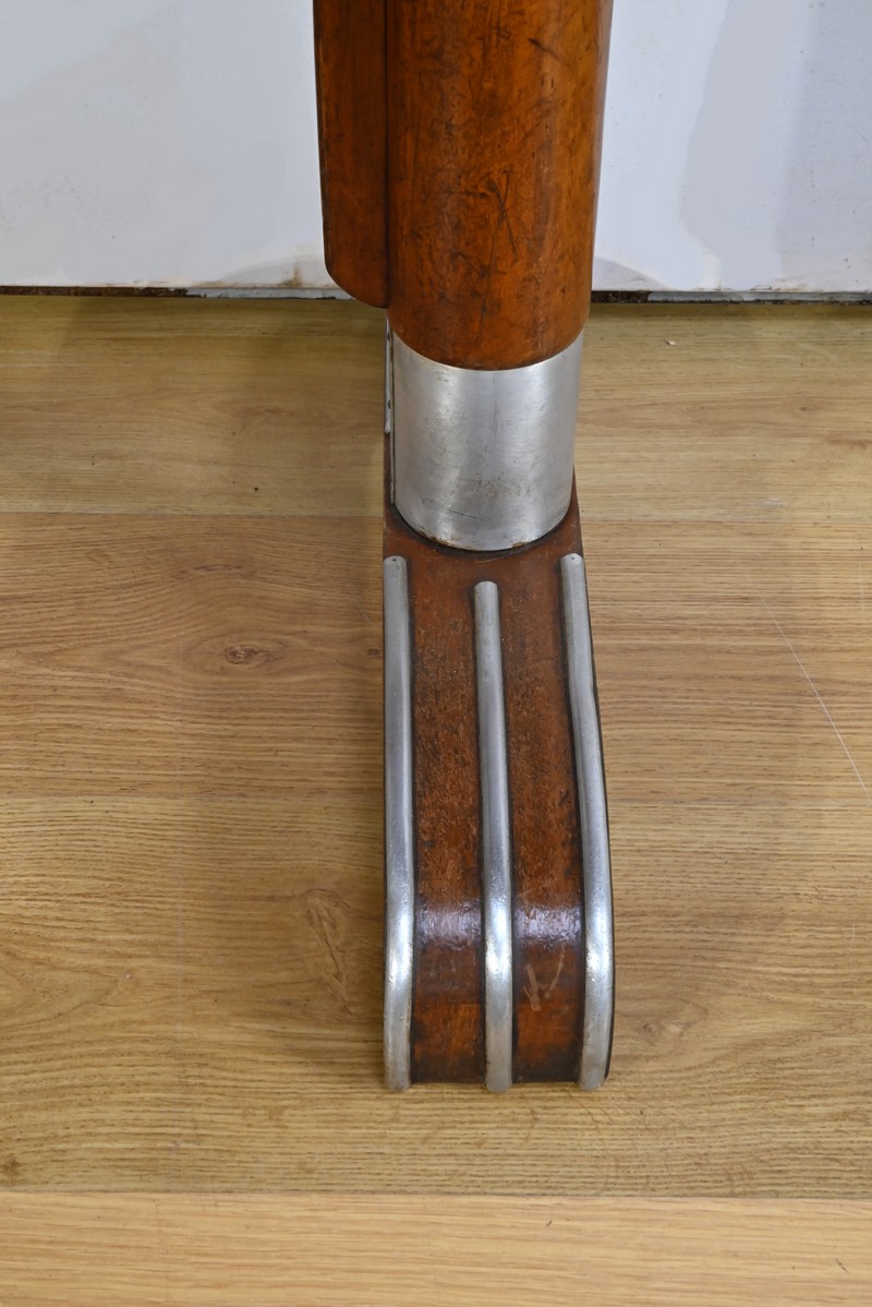 Le hêtre teinté du piétement apporte une touche de chaleur et de sophistication. Ce bois, apprécié pour sa robustesse et sa belle texture, est ici teinté pour accentuer ses veines naturelles et offrir une finition élégante.