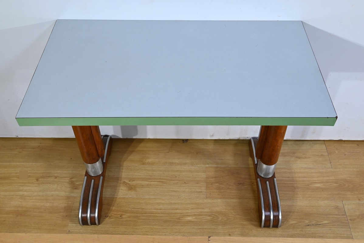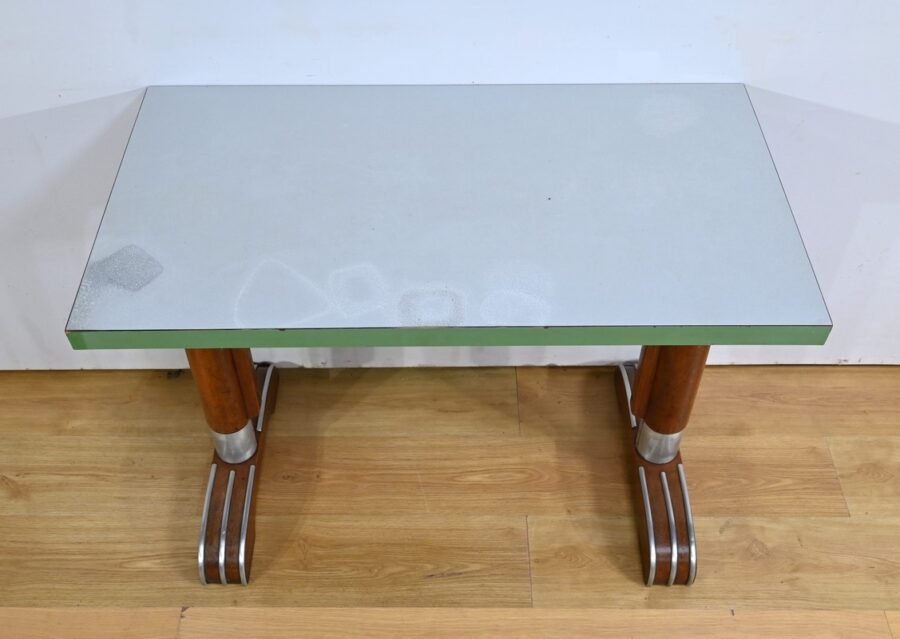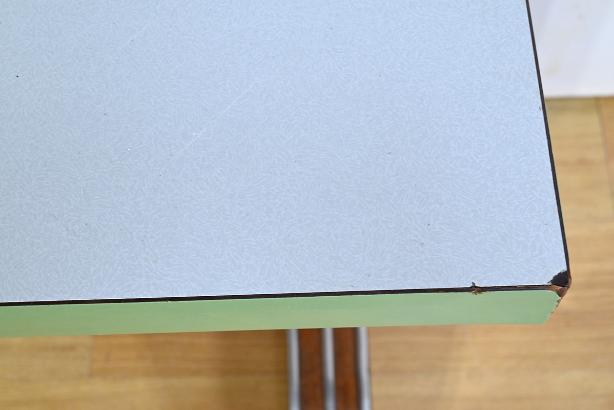 Ce matériau est connu pour sa durabilité et sa facilité d’entretien, ce qui en faisait un choix idéal pour les bistros animés.