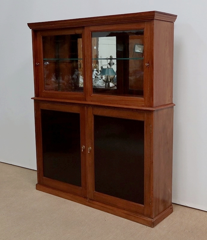 Rare meuble de commerce en acajou massif composé de deux éléments.