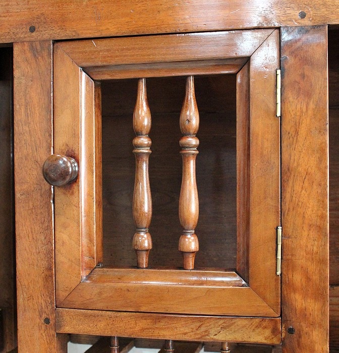 Rare Panetière en Noyer, d’époque Louis Philippe, ouvrant par une petite porte à charnières laiton et à bouton tournant.
