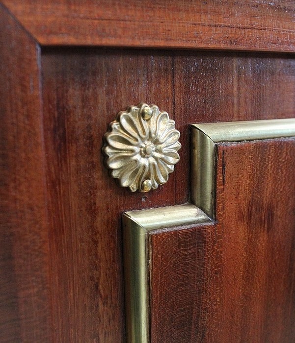 Cabinet en Acajou massif et plaqué, généreusement garni de laiton, de style Louis XVI.