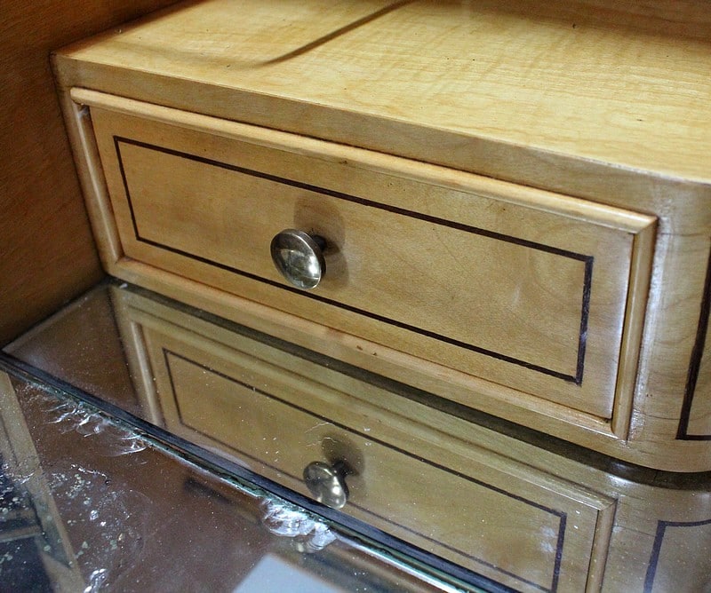 Excellent état d’origine. Traces d’ancienneté sur les Miroirs (voir photos). Finition vernie au Tampon.