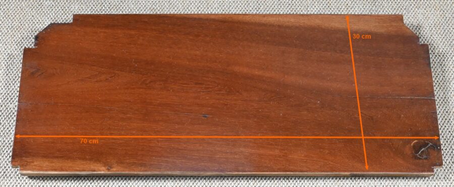 L’intérieur en acajou se structure de deux étagères réglables sur crémaillères.