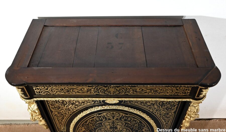 Parfait état après restauration dans notre atelier. Réparation postérieure du marbre. Finition vernis tampon à l’extérieur et gomme laque à l’intérieur