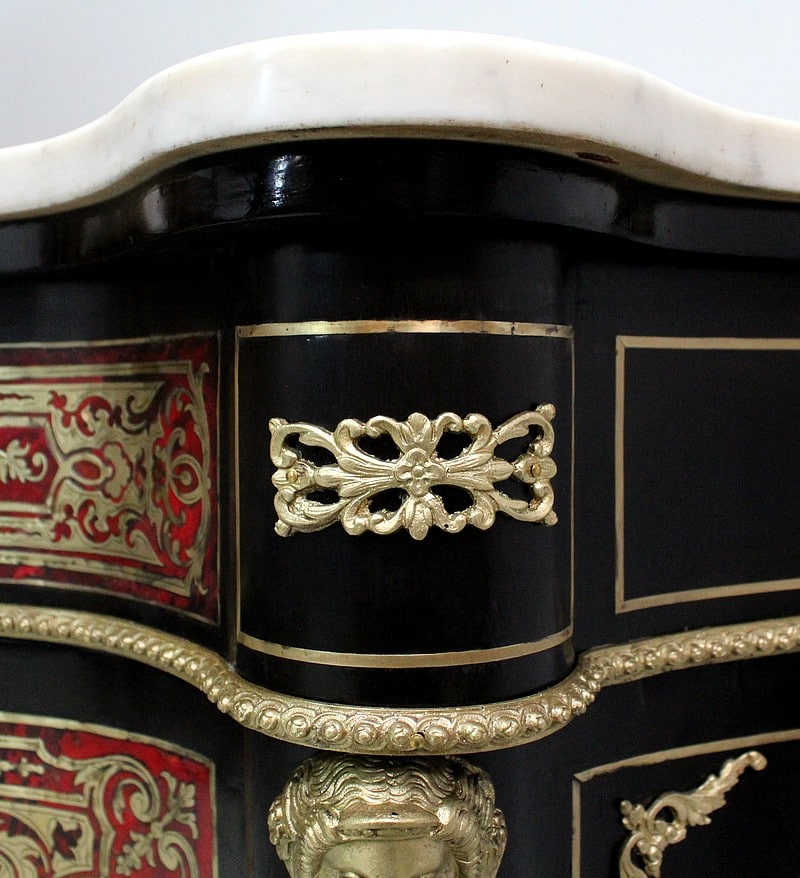 Meuble à hauteur d’appui en Marqueterie ‘Boulle’ d’Écailles de Tortue Rouges et de laiton découpé, sur fond de Poirier noirci.