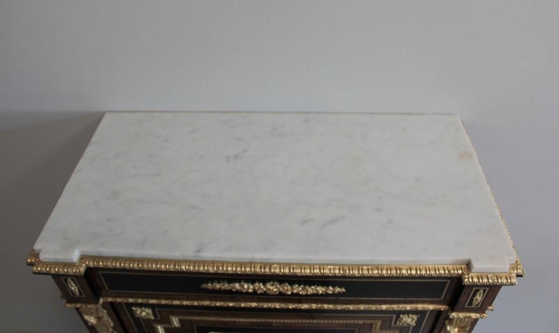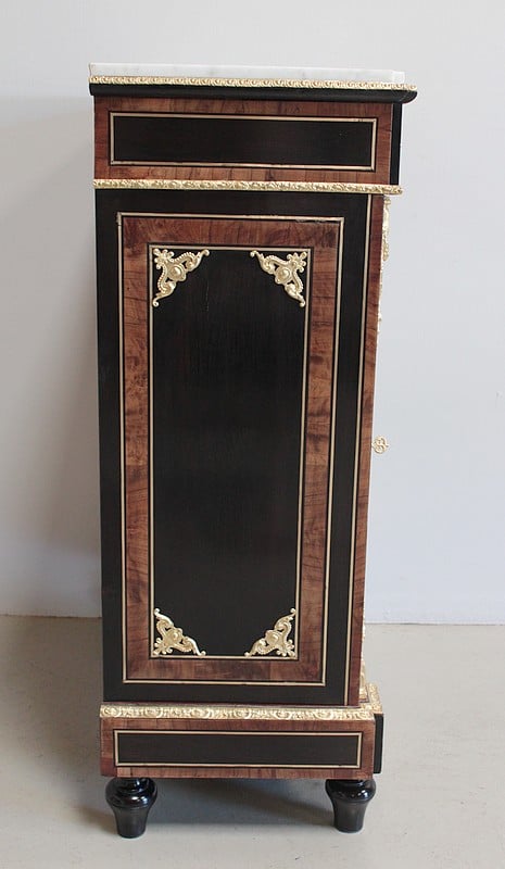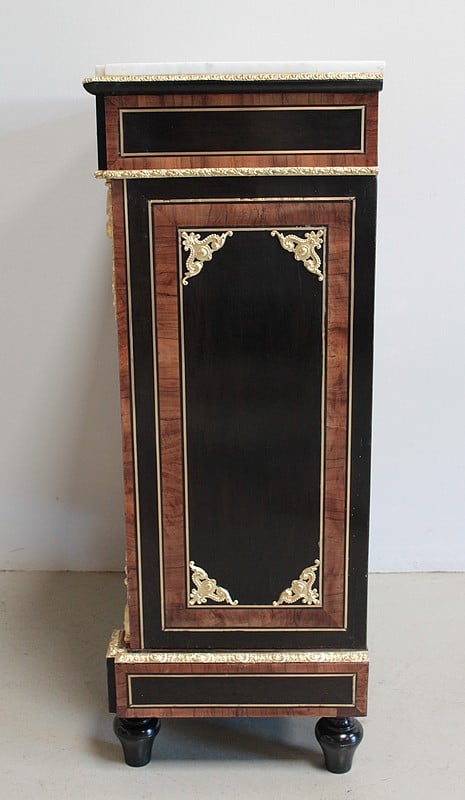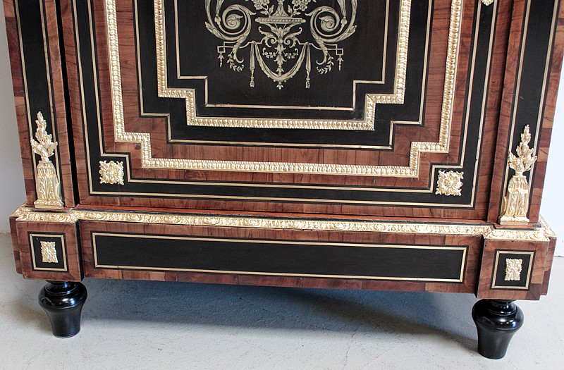 Meuble à hauteur d’appui NAPOLÉON III en bois noirci et bois de thuya pour les parties claires.