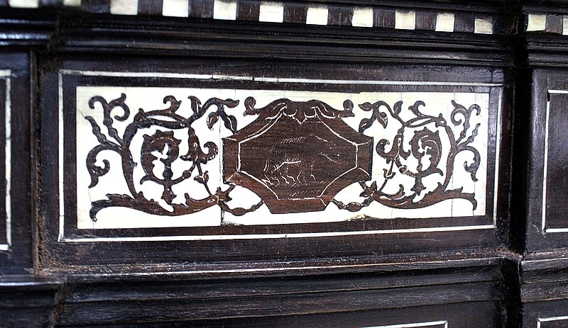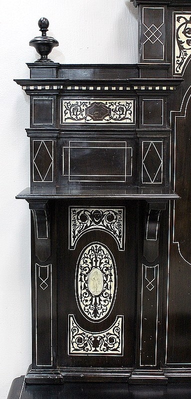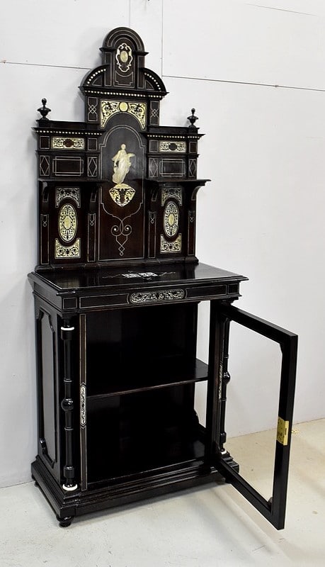 Rare meuble d’Apparat aux nombreuses Marqueteries d’Ivoire, sur fond de Poirier Noirci, typique de l’époque Napoléon III.