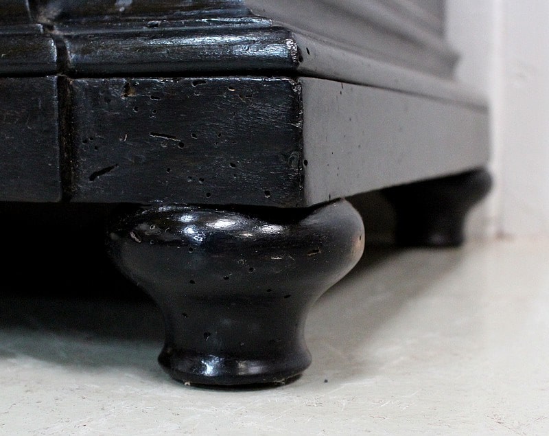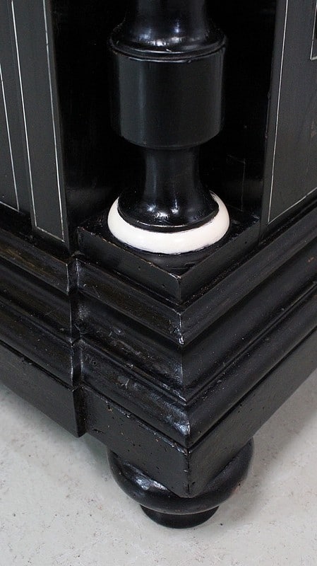 On appréciera la Délicatesse de ce meuble d’Apparat, Rare par sa composition, qui pourra notamment s’harmoniser dans une Déco ‘Black and White’. L’effet Contraste de ce binôme est réussi : les Marqueteries Claires sont mises en valeur par un fond d’un Noir profond.