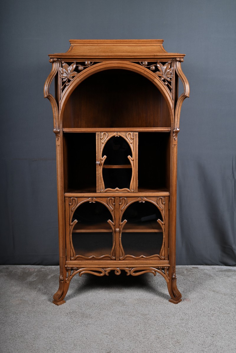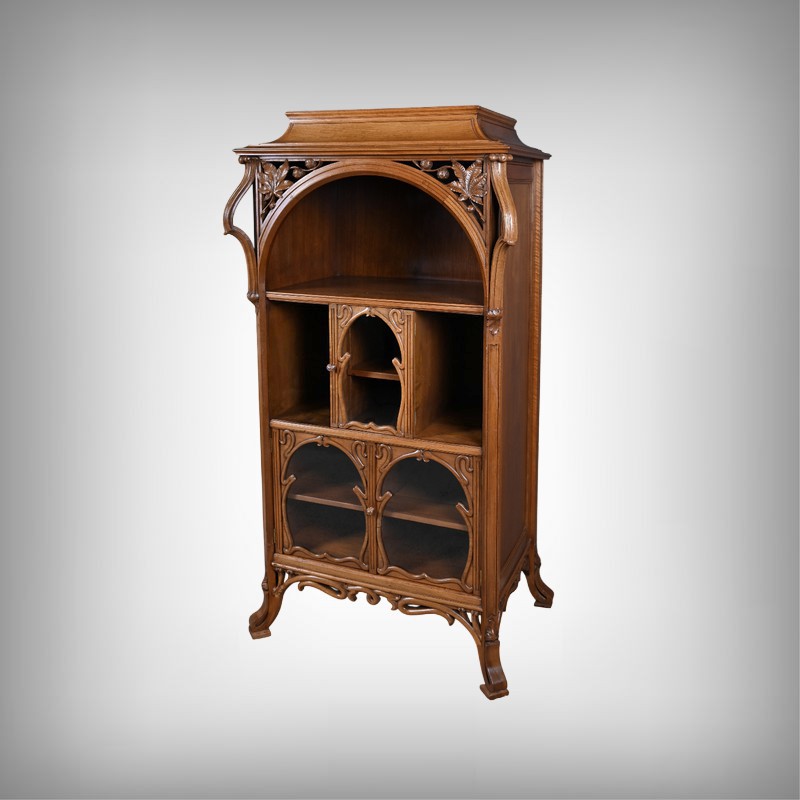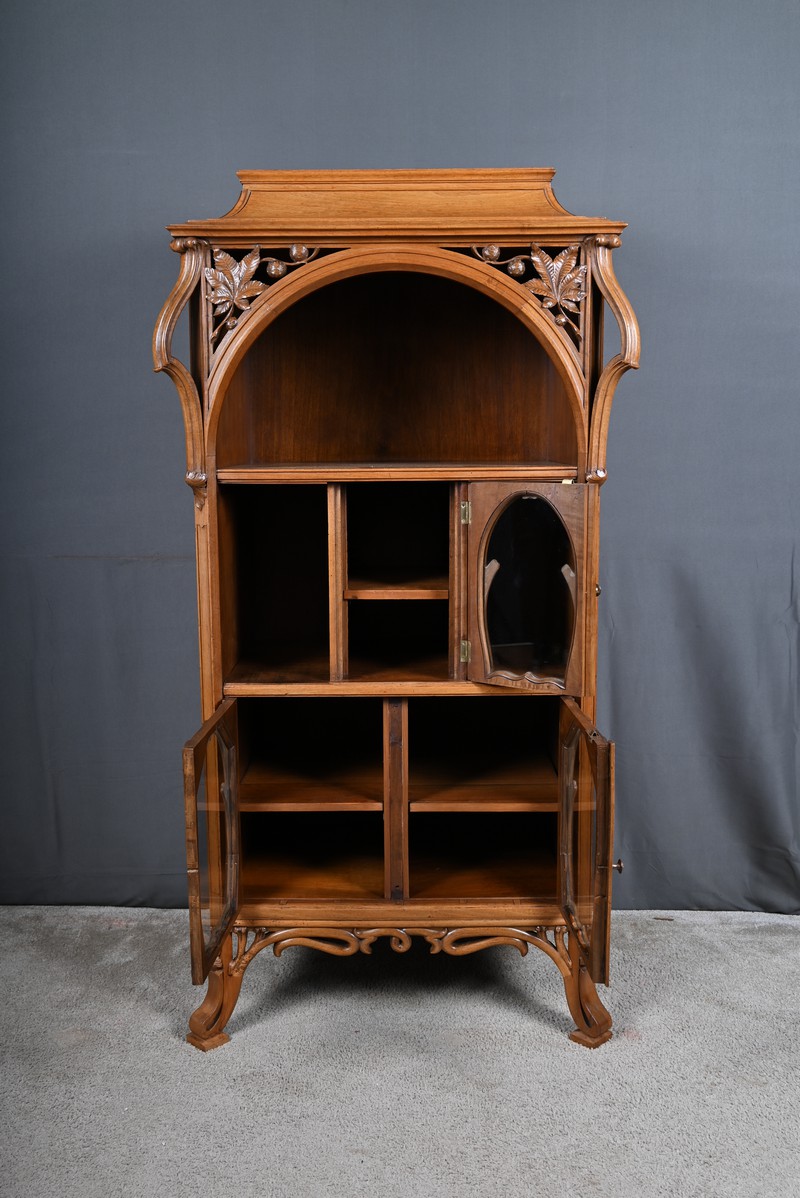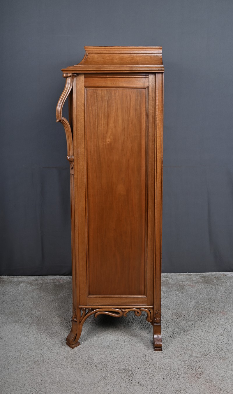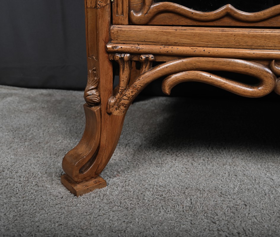 Ce magnifique meuble incarne toute la poésie du style Art Nouveau, avec une inspiration marquée par l’œuvre de Louis Majorelle. Il séduit par ses lignes courbes, ses motifs végétaux et son travail du bois d’une finesse remarquable.