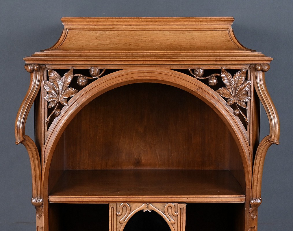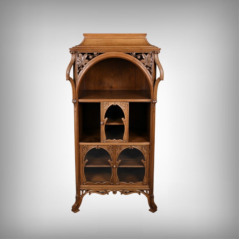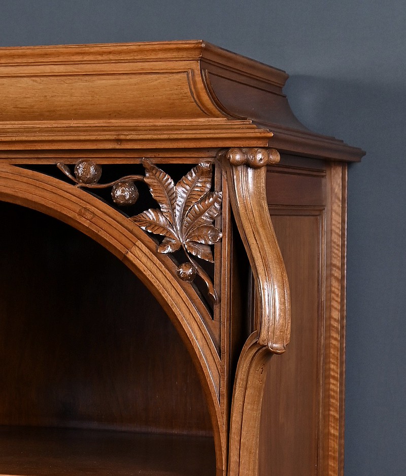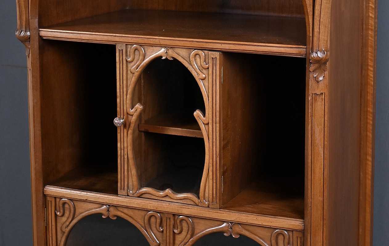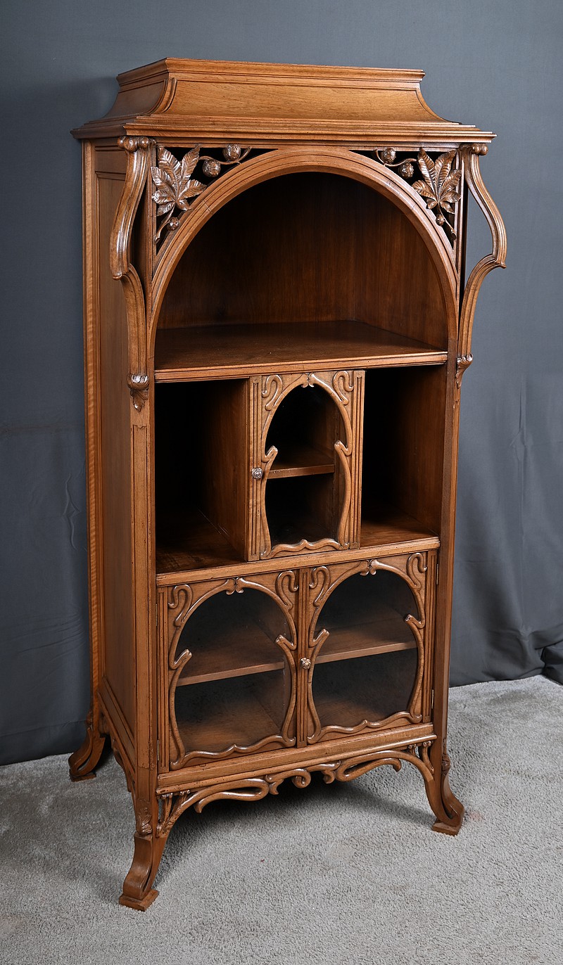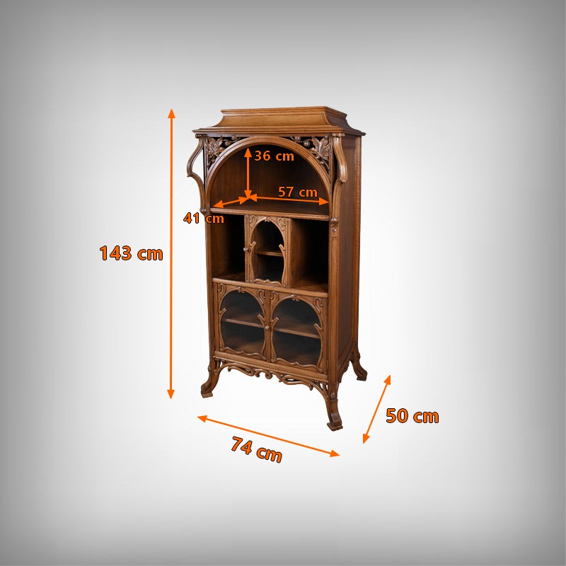 Ce magnifique meuble incarne toute la poésie du style Art Nouveau, avec une inspiration marquée par l’œuvre de Louis Majorelle. Il séduit par ses lignes courbes, ses motifs végétaux et son travail du bois d’une finesse remarquable.