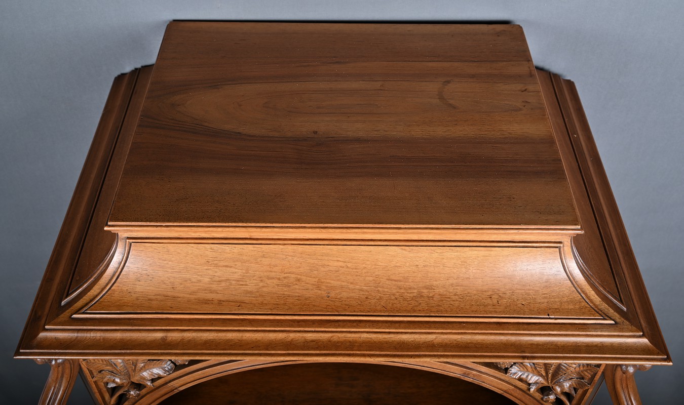 L’ensemble est sublimé par des volutes et arabesques finement sculptées, qui parcourent le meuble comme une envolée lyrique. Chaque détail témoigne d’un savoir-faire artisanal exceptionnel et d’une esthétique tournée vers l’harmonie et la beauté.