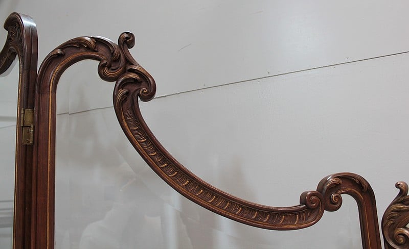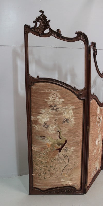 Paravent en noyer de style Louis XV à 3 vantaux en dégradé.