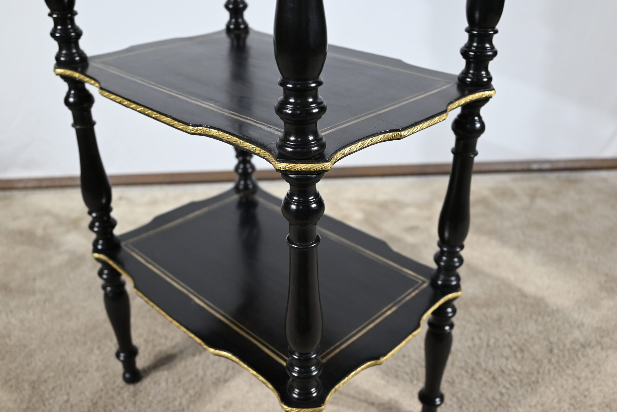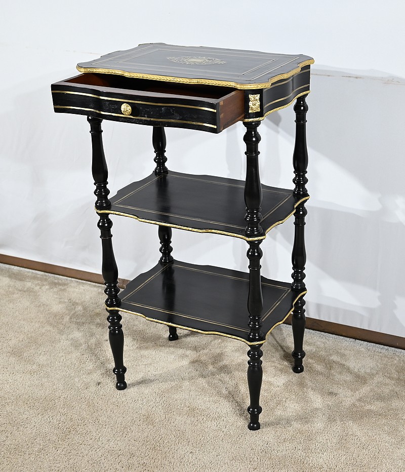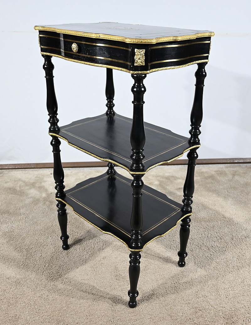 Rare Petite Table Desserte en Poirier noirci et Laiton, époque Napoléon III – Milieu XIXe