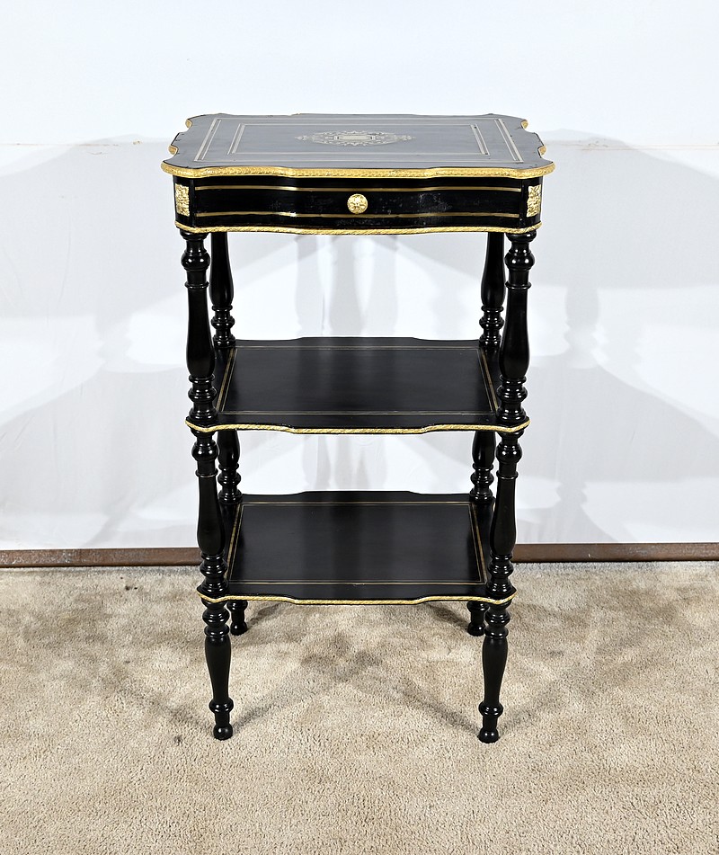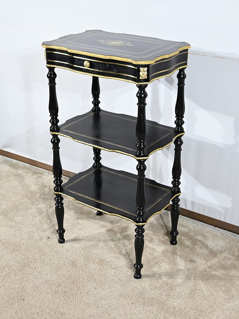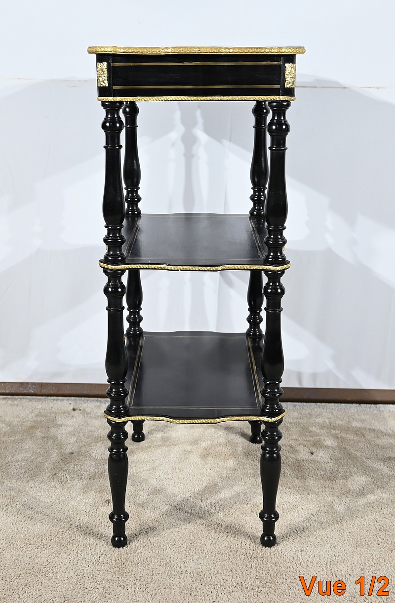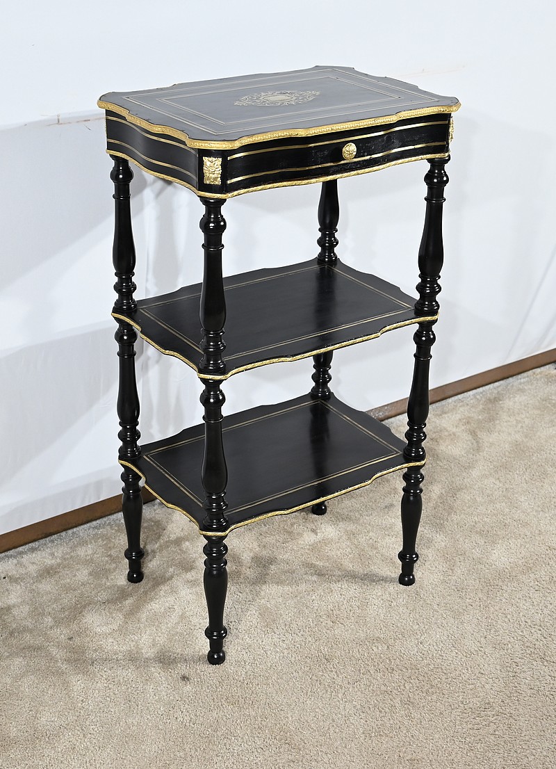 Rare Petite Table Desserte en Poirier noirci et Laiton, époque Napoléon III – Milieu XIXe