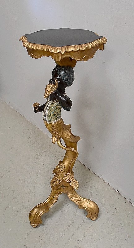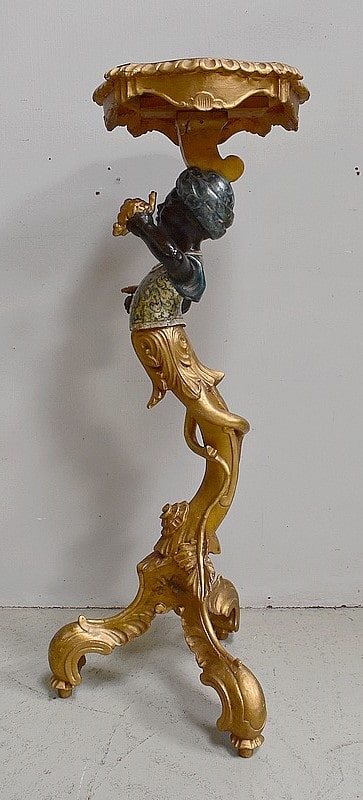Conçue dans le goût Vénitien du XVIIIe siècle, cette sellette de caractère ferait sans nul doute son effet comme élément de décoration dans un intérieur contemporain, où elle saura mettre en valeur l’objet qu’elle exhibera.