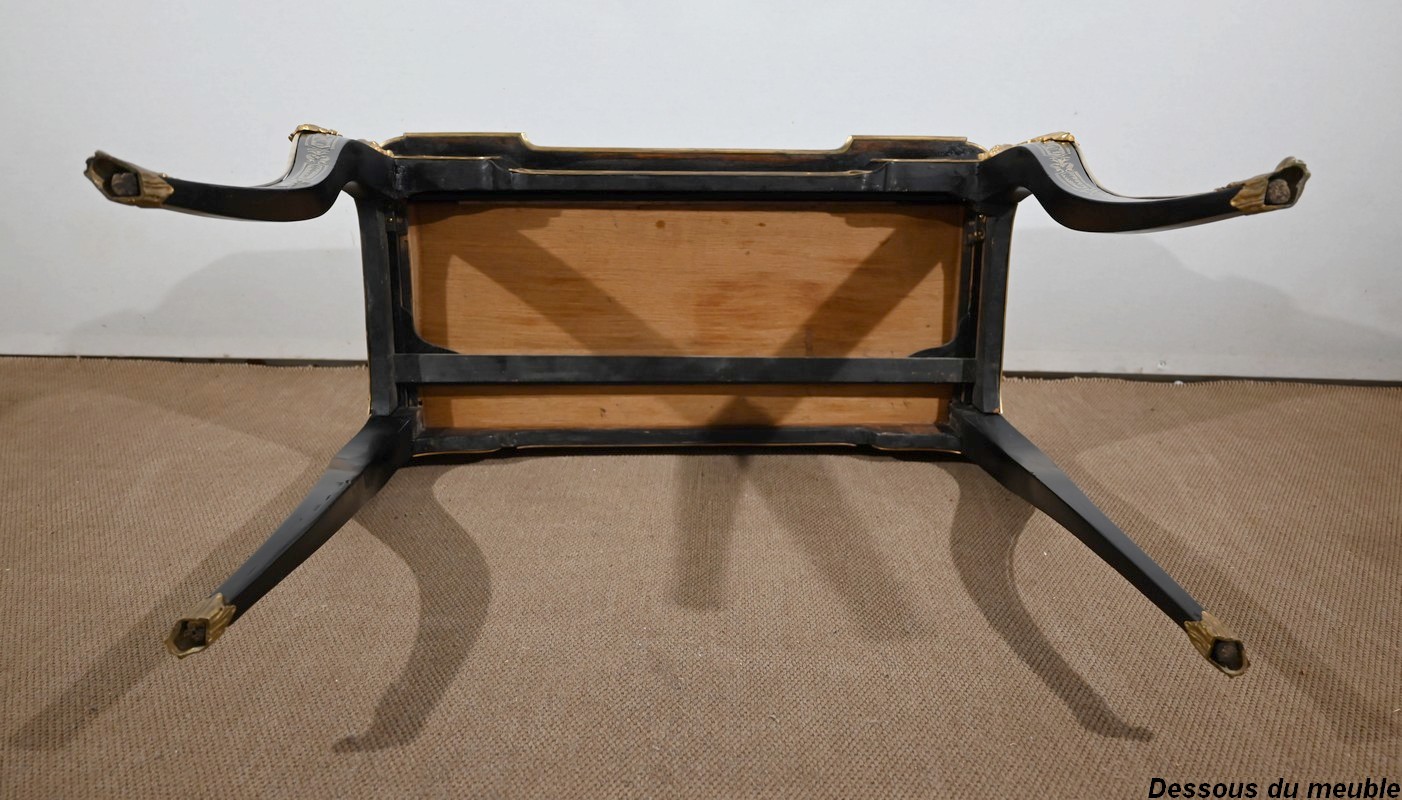 Table Console toutes faces en poirier noirci, de forme rectangulaire.