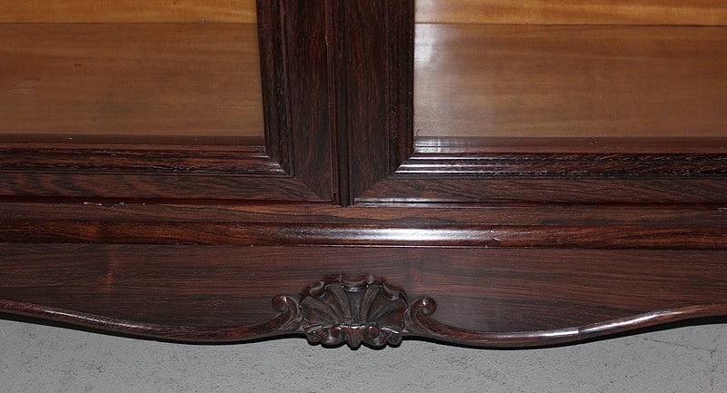 Portes à découpes et traverse basse chantournée ornée d’une coquille.