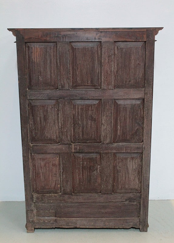 Elle ouvre par deux portes à panneaux avec découpe dans le goût Louis XIV. Côtés également à panneaux.