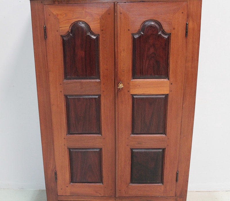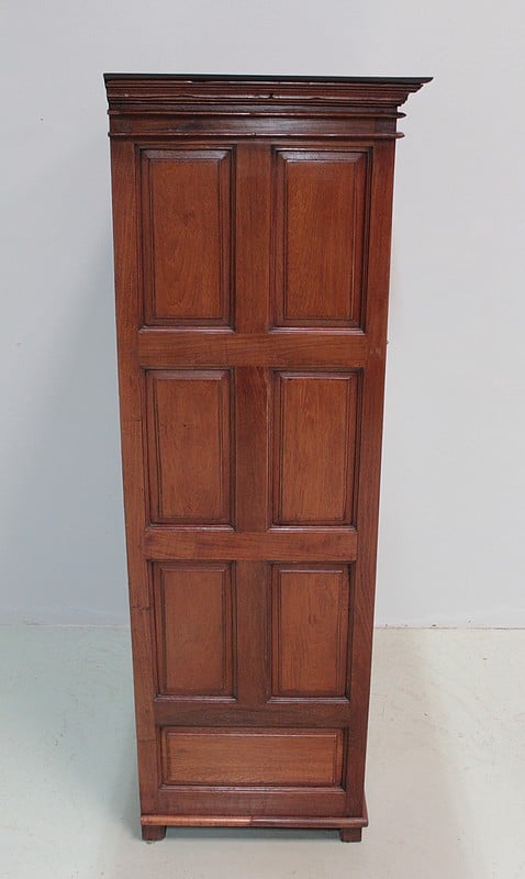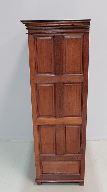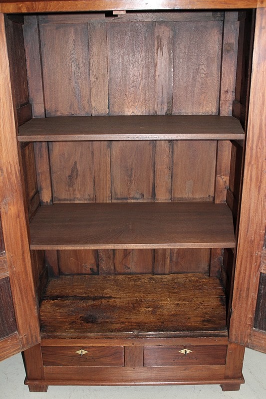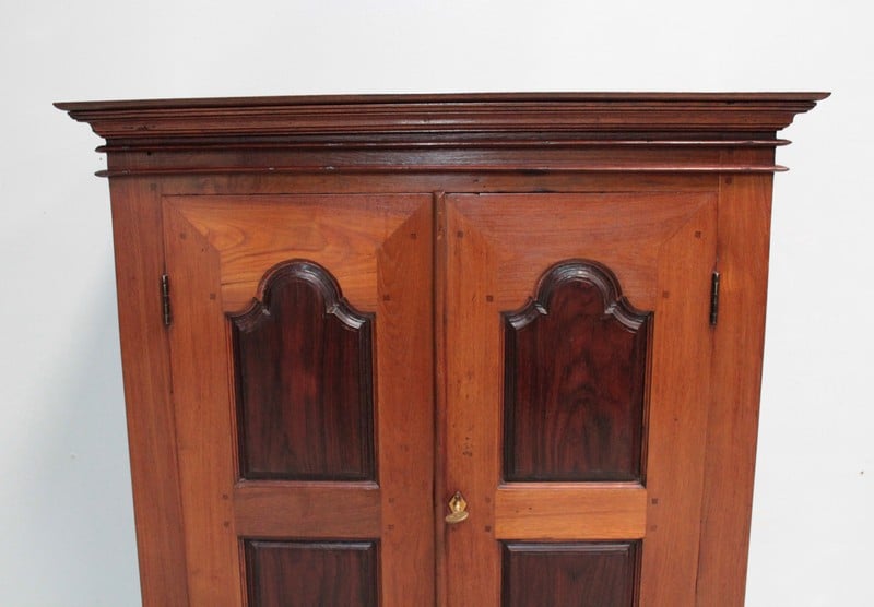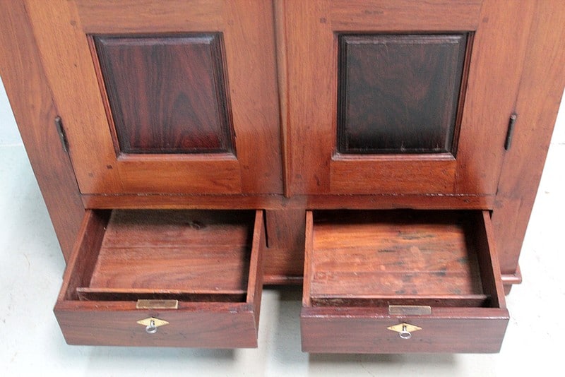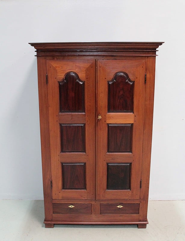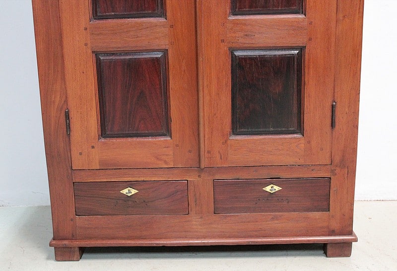 Armoire dans l’esprit Louis XIV en teck et palissandre pour les 6 panneaux des portes et la façade des 2 tiroirs situés en partie basse.
