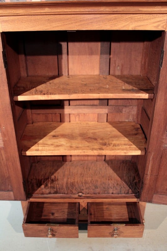 Petite Armoire en teck dans le goût Louis XIV, ouvrant par 2 portes et 2 tiroirs en partie basse. L’intérieur est garni de 2 étagères. Région de Pondichéry (Inde) XIXe siècle.