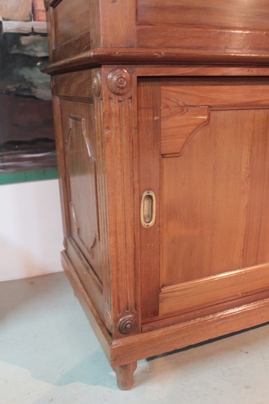 La façade, l’arrière et les côtés sont moulurés. Les montant sont à cannelures. Il repose sur des pieds ‘toupie’. L’intérieur est divisé en 2 parties garnies d’une étagère sur crémaillères. Région de Pondichéry(Comptoir français des Indes)