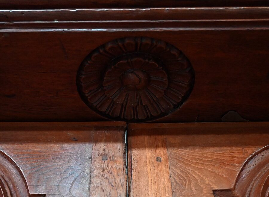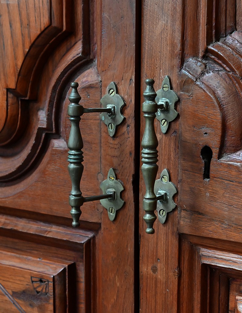 Les portes sont agrémentées de poignées façonnées en laiton et d’éléments en fer améliorant la solidité de l’ensemble.