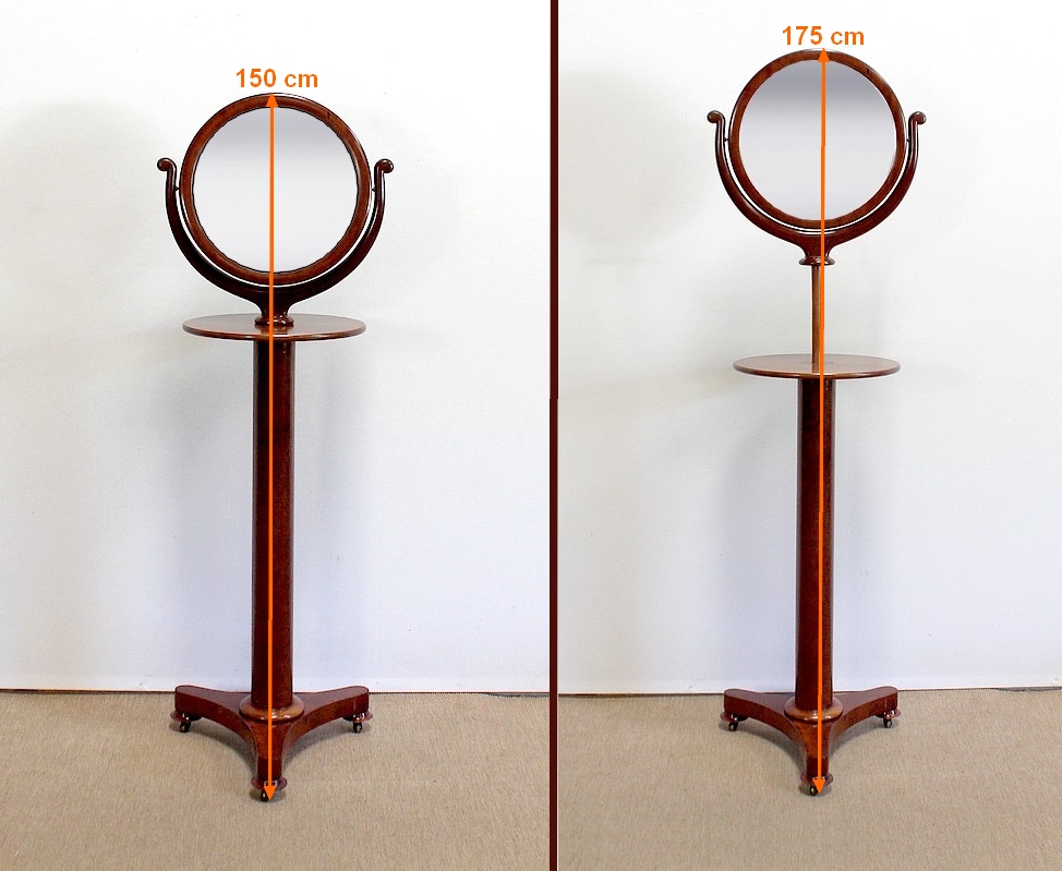 Réglable en hauteur, cette psyché peu commune présente un système de double poids situé dans le fût.