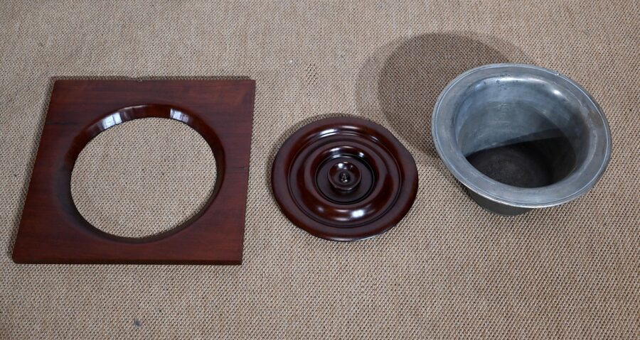 Rare meuble d’aisance en acajou de Cuba ouvragé à Nantes au XVIIIème siècle.