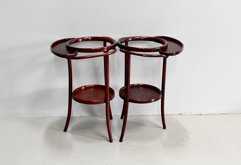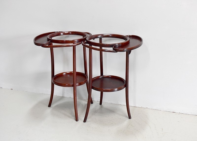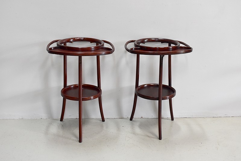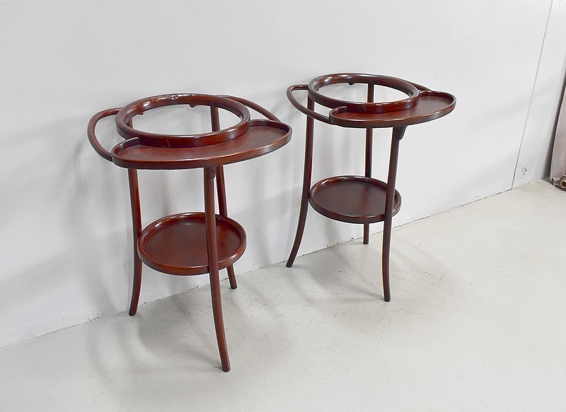 Paire de Barbières en bois courbé, teinté et vernis, estampillées « Japy Frères ».