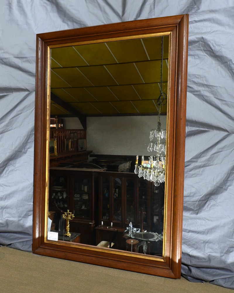 La glace au mercure, typique des miroirs anciens, offre une réflexion claire et authentique, rappelant le charme des époques passées.