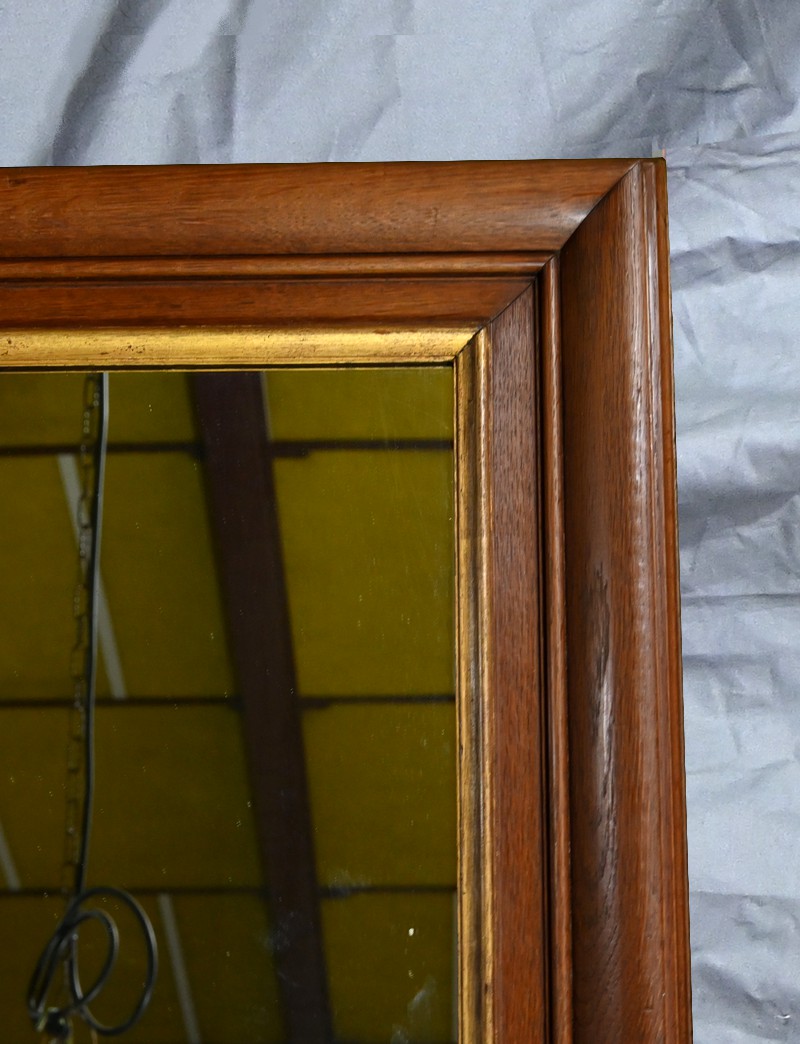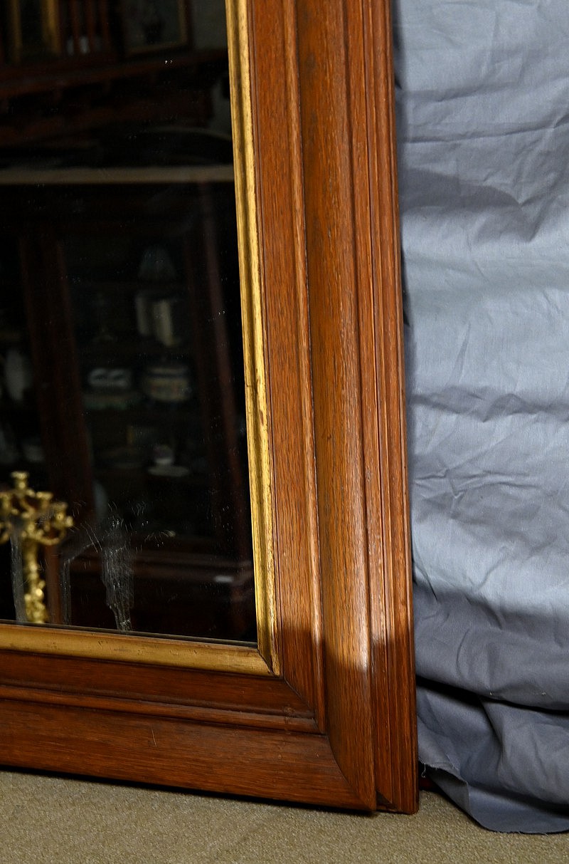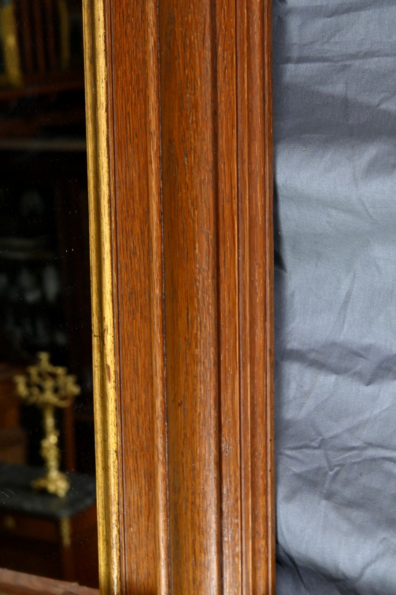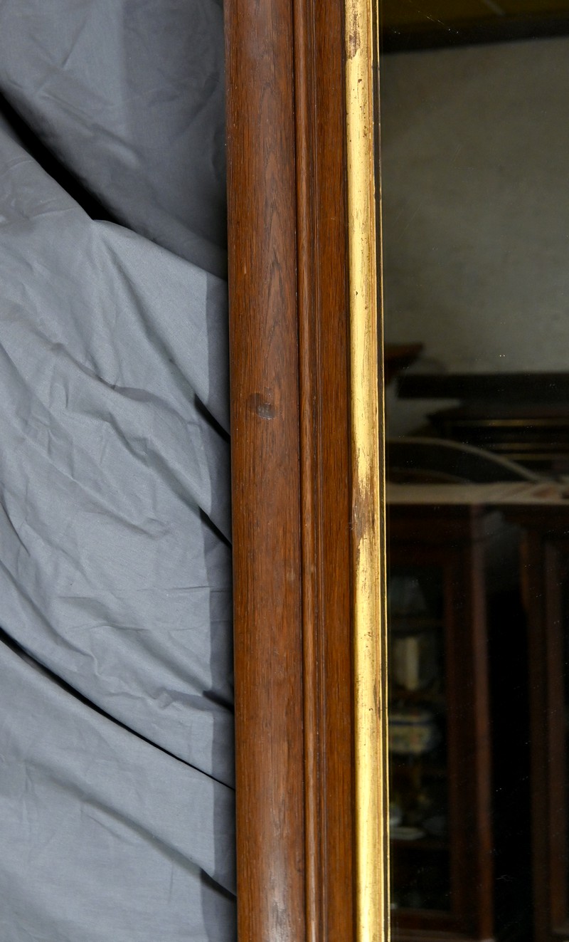 Le cadre en chêne, avec ses moulures détaillées, témoigne du savoir-faire artisanal de l’époque.