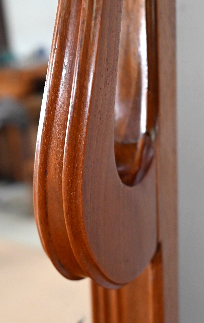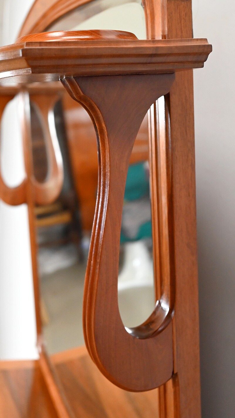 Ce miroir n’est pas sans rappeler les créations de Louis Majorelle, ébéniste français du mouvement Art Nouveau, amoureux des formes naturalistes et des lignes courbes.