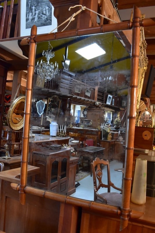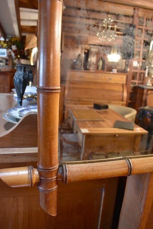 Miroir de taille moyenne en merisier de forme ‘bambou’.