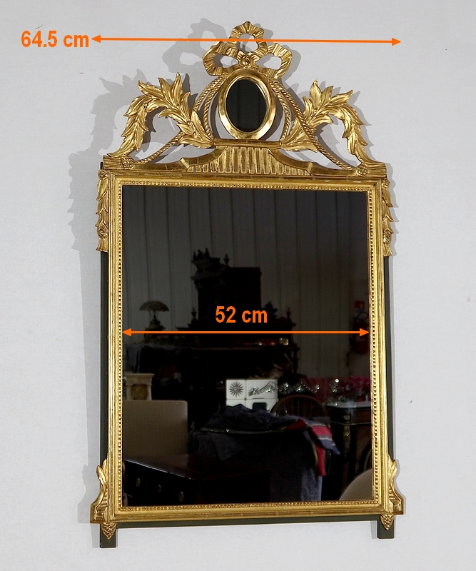 Miroir Louis XVI raffiné, composé d’une glace et d’une dorure en parfait état.