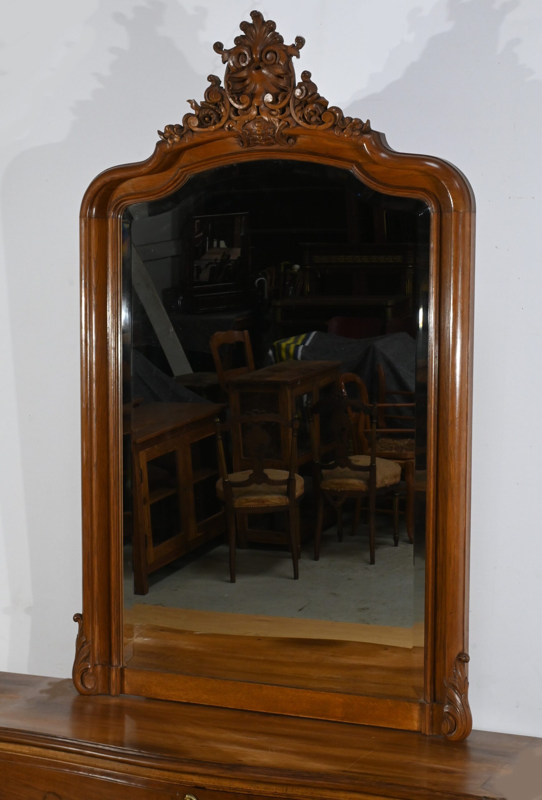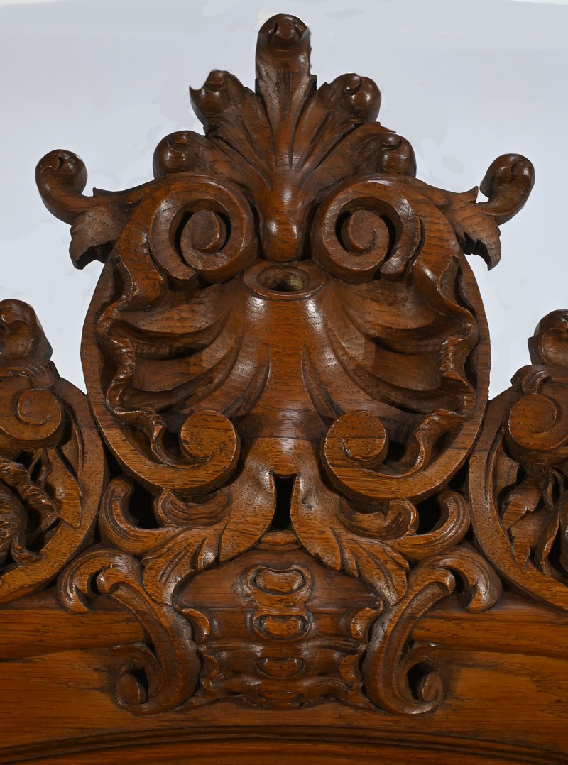 Ce miroir en chêne, inspiré du style Louis XV/Rocaille et datant de la fin du XIXe siècle, est une pièce remarquable par son élégance et son raffinement.