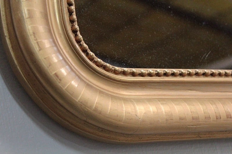 Miroir de forme rectangulaire aux angles arrondis, style Louis-Philippe, en bois doré à la feuille.