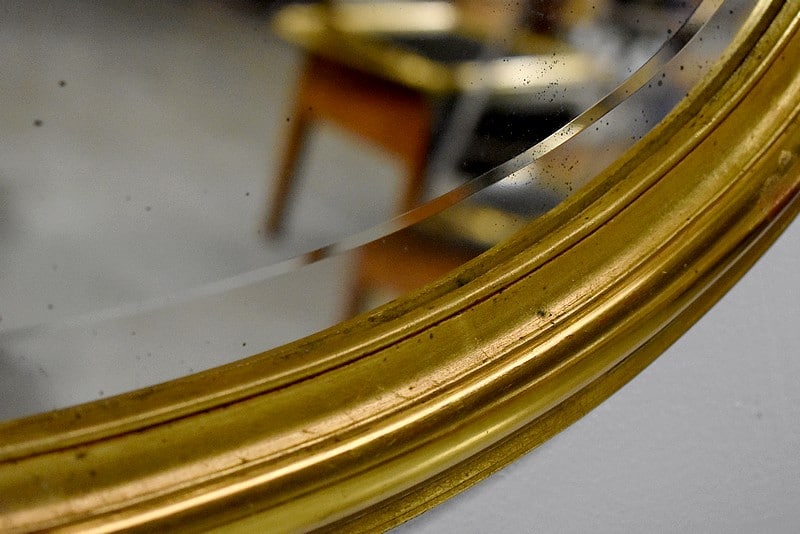 Le cadre mouluré entoure une glace biseautée au mercure.