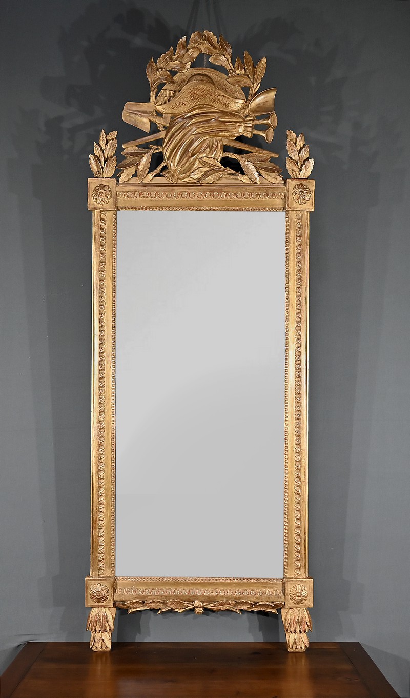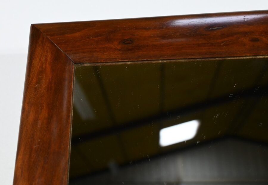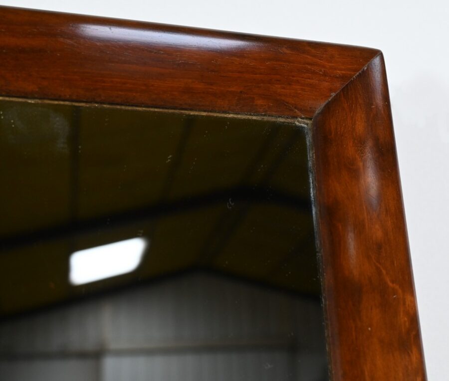 Le miroir a été refait et bascule sur un axe central, enjolivé par de petites pommes de pin en laiton, ajoutant une touche élégante et raffinée.