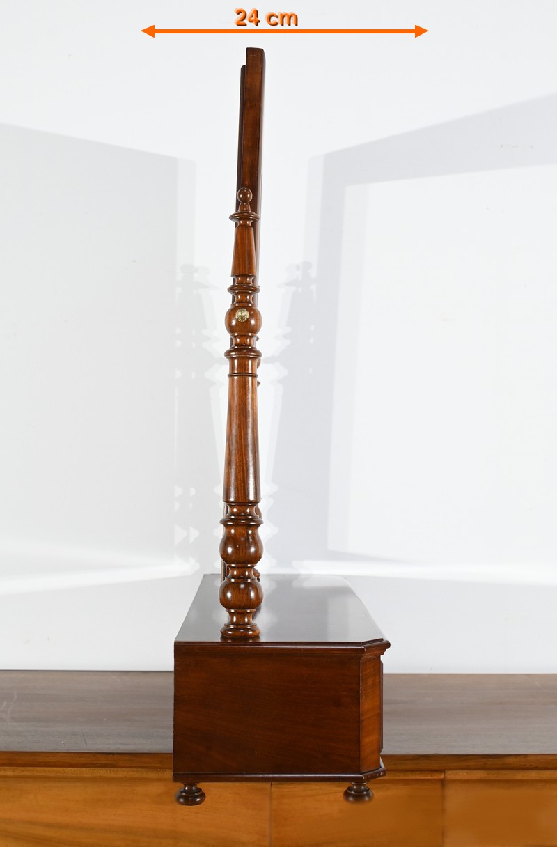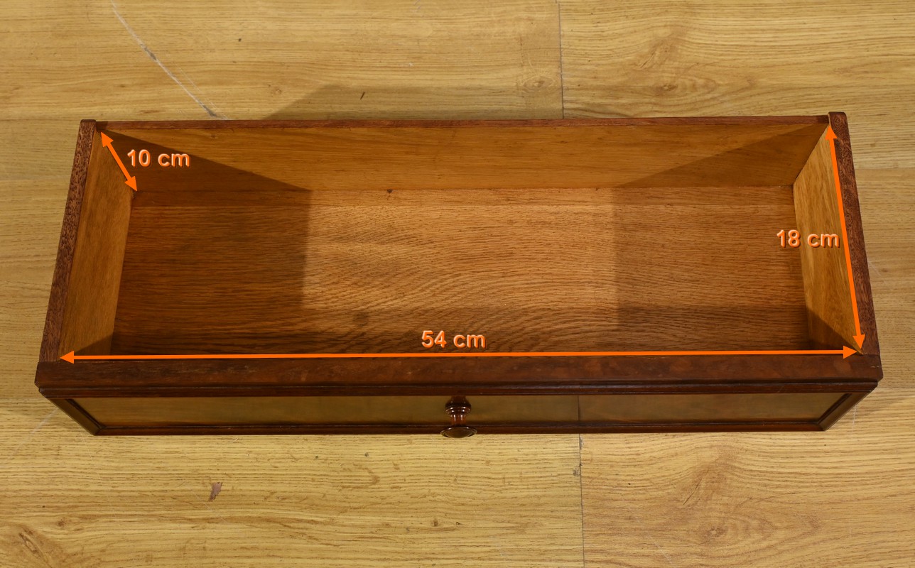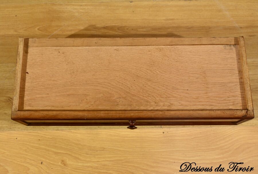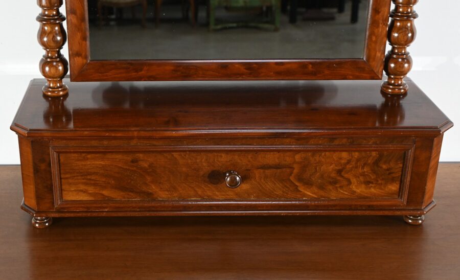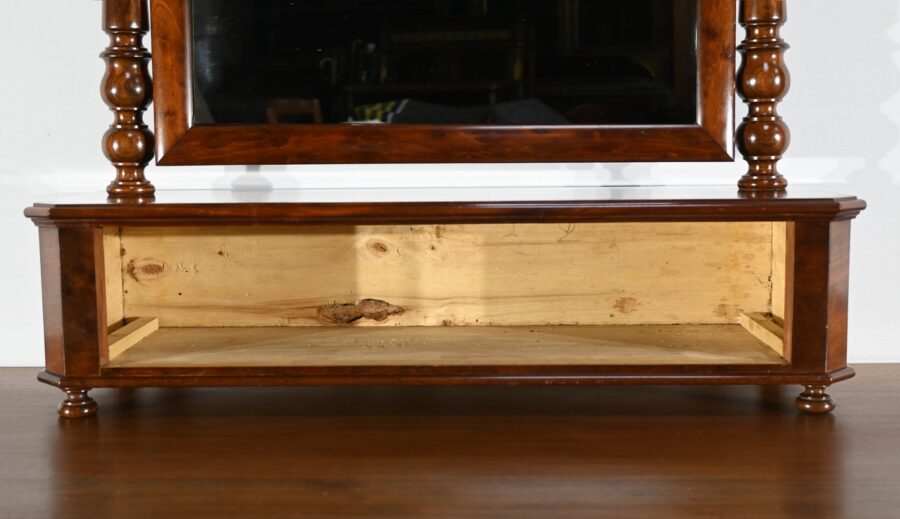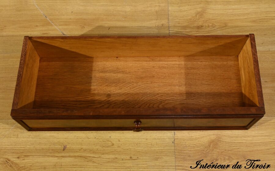 Il s’ouvre par un tiroir à bouton en bois tourné à façade, offrant un espace de rangement pratique.