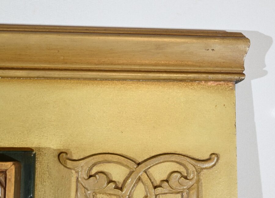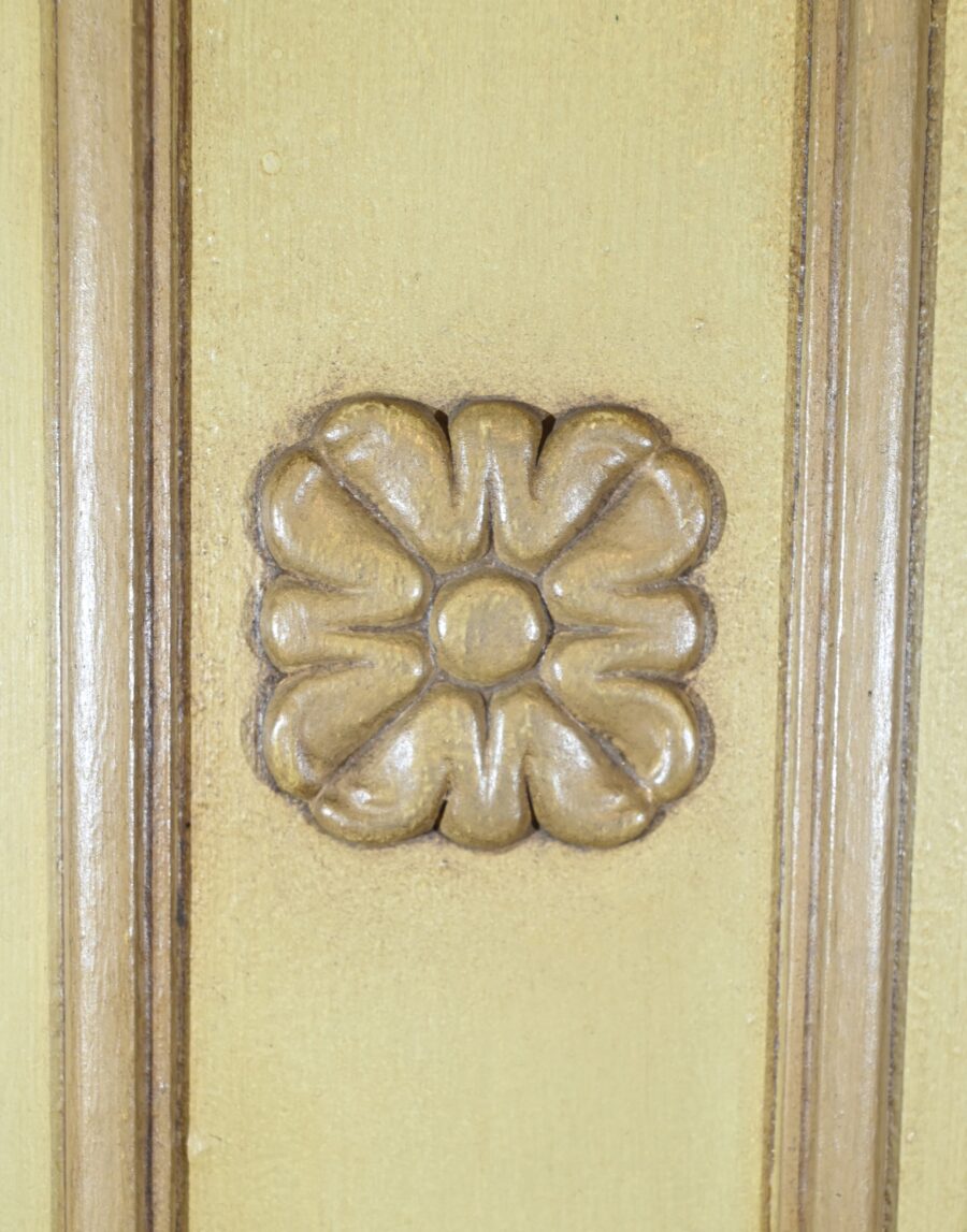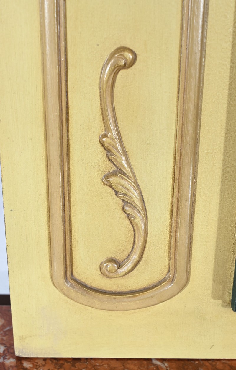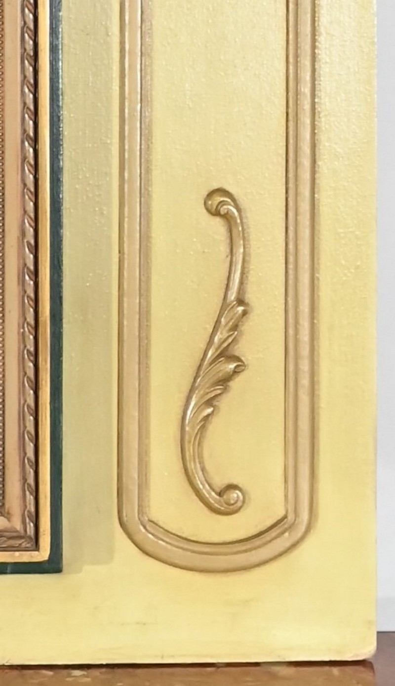 L’ensemble est souligné d’une moulure en torsade et de baguettes peintes de couleur vert sapin.