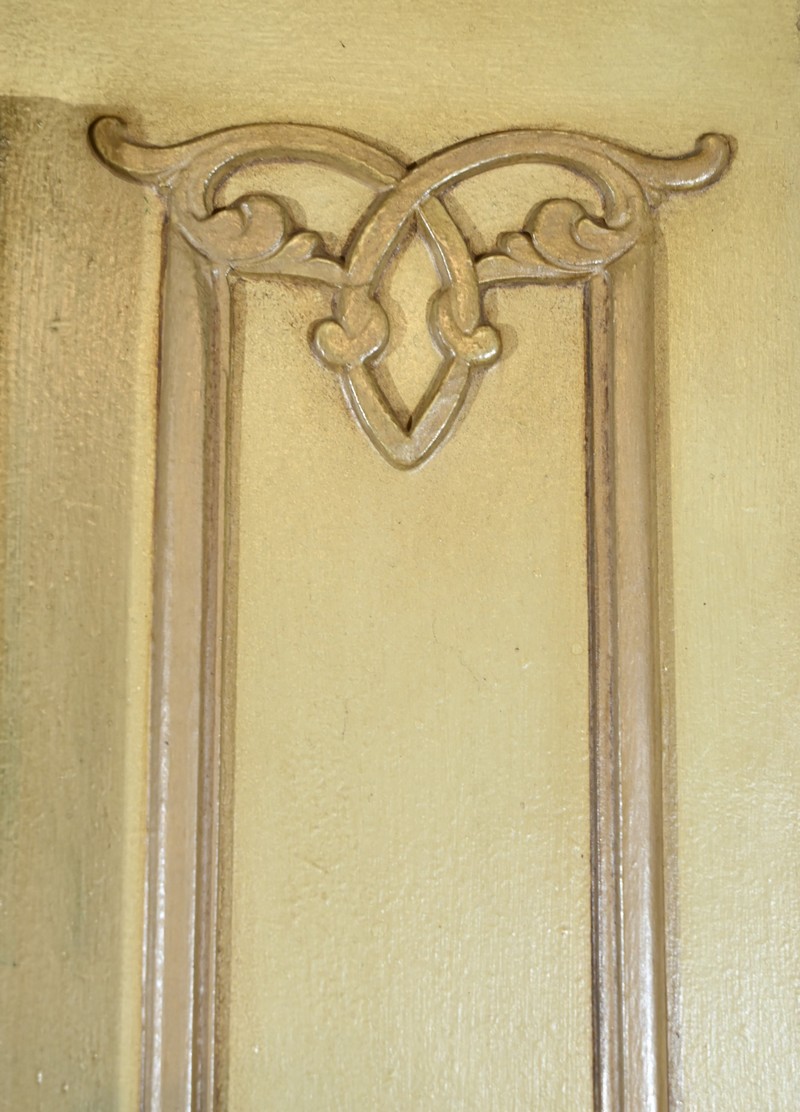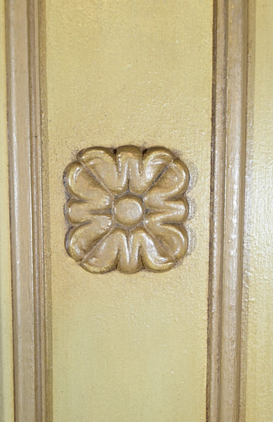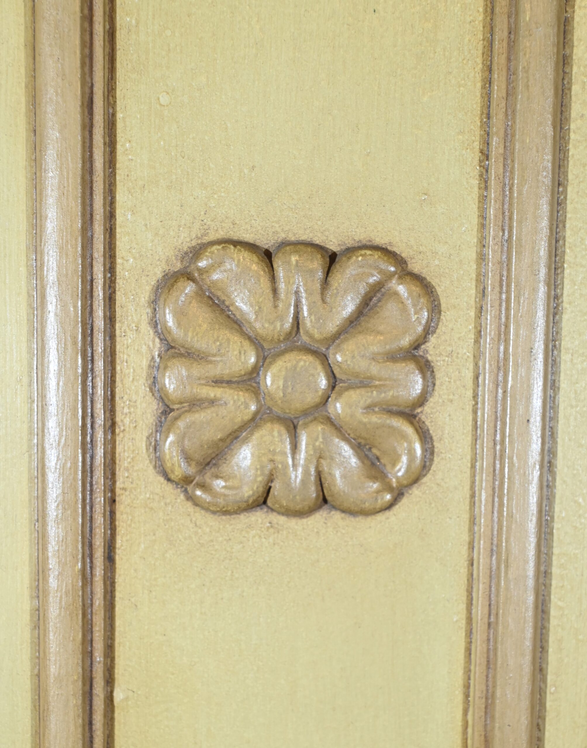 L’ensemble est souligné d’une moulure en torsade et de baguettes peintes de couleur vert sapin.