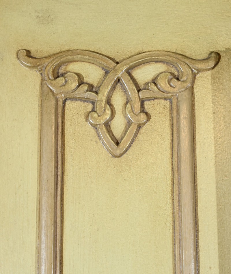 Les côtés sont également moulurés de rosaces, de rinceau et d’entrelacs à volutes.