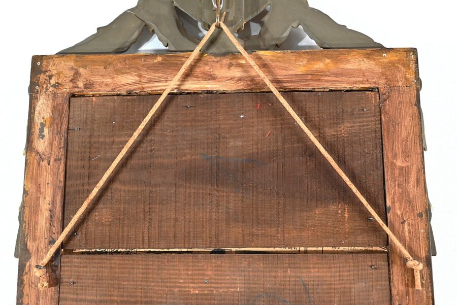 Cet article est sommé d’un grand fronton ajouré composé d’une coupe fleurie enroulé d’une guirlande de lauriers.
