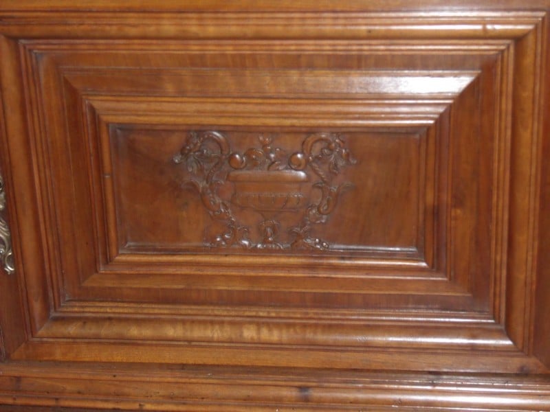 Les panneaux des portes sont sculptés de vases Médicis garnis.