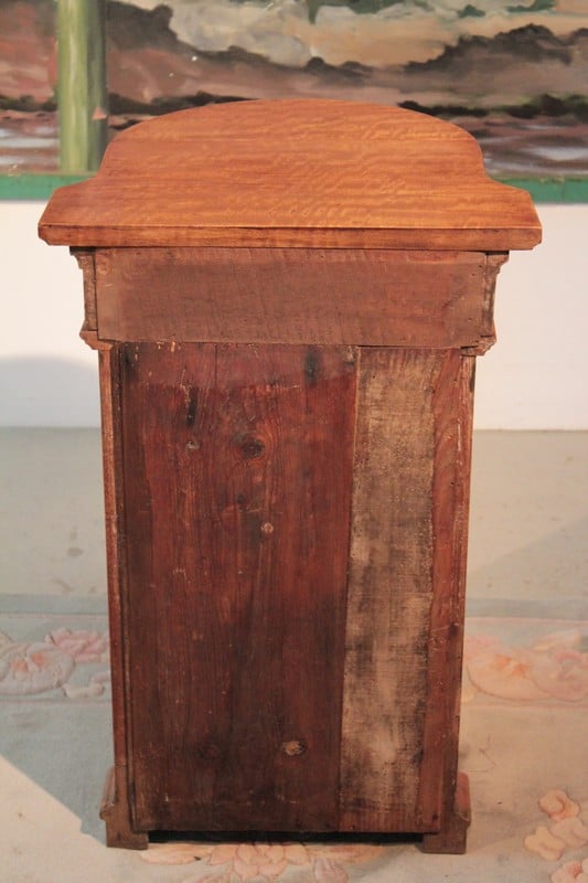 Petit meuble de bateau en teck blond ouvrant par une porte cintrée.