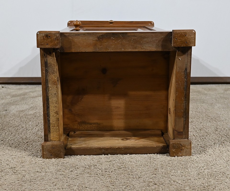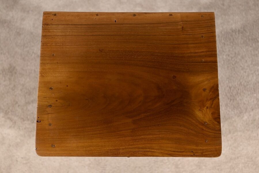 Le dessus de ce meuble est constitué d’une seule planche de noyer avec double moulurations par le dessous.