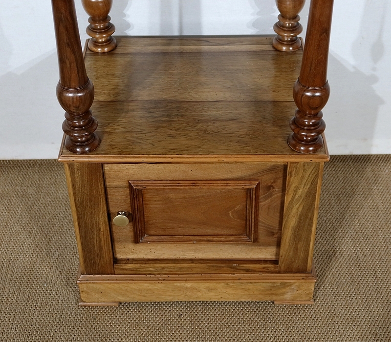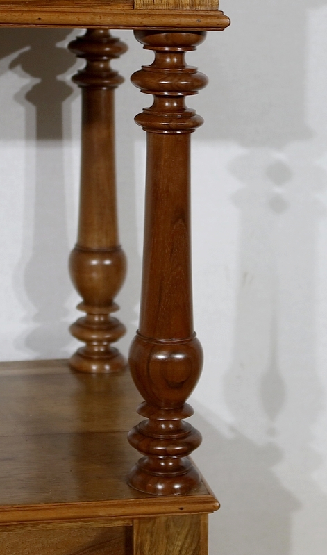 Cet ensemble repose sur quatre pieds ‘balustre’ en cœur de noyer, légèrement plus soutenus que le reste du meuble.